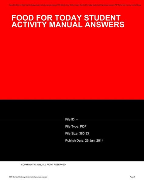 Read Online FOOD FOR TODAY STUDENT ACTIVITY MANUAL ANSWERS Paperback BookBoon